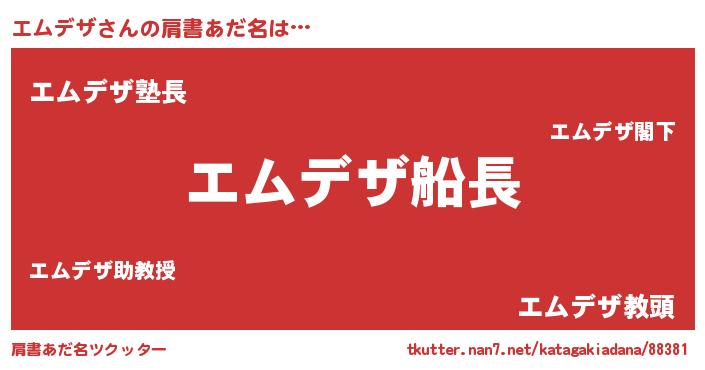 | 意味不明あだ名 | 『とにかく怪しいエムデザ』 |