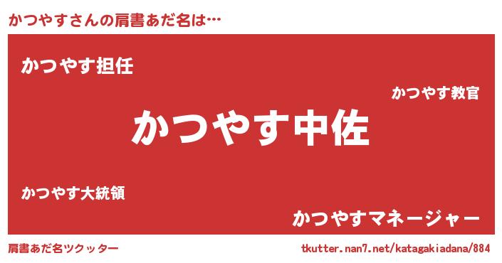 | ヒーロー風カッコイイあだ名 | 『ネオカツヤス』『仮面カツダー』 |