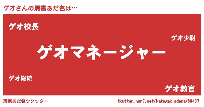 | ポケモン風あだ名 | 『ゲオゴンZ』『ゼニゲオ』『ゲーオイ』 |