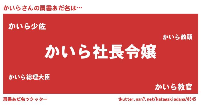 | 女子向けラノベタイトル風あだ名 | 『かいら姫と円卓の騎士』 |
