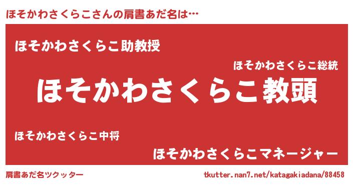 | 意味不明あだ名 | 『永久保存ほそかわさくらこ』 |