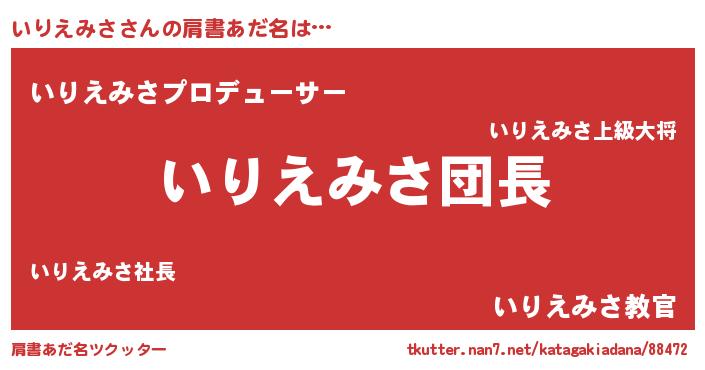 | 胡散臭い通販商品みたいなあだ名 | 『信頼と実績のサプリメント…その名も「いりえみさ」』 |