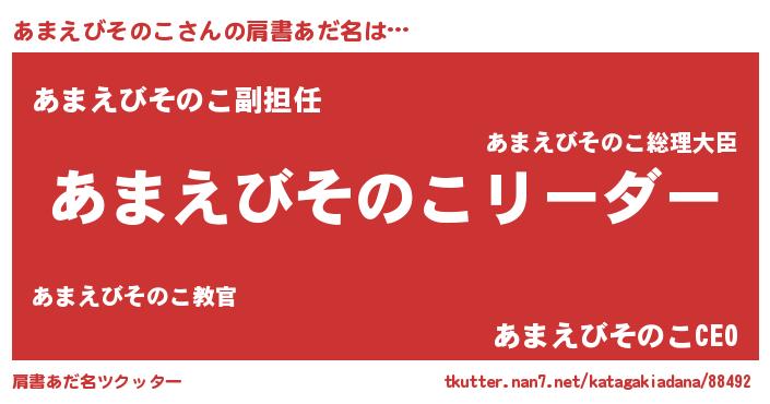 | 女子向けラノベタイトル風あだ名 | 『あまえびそのこは平凡を望む』 |