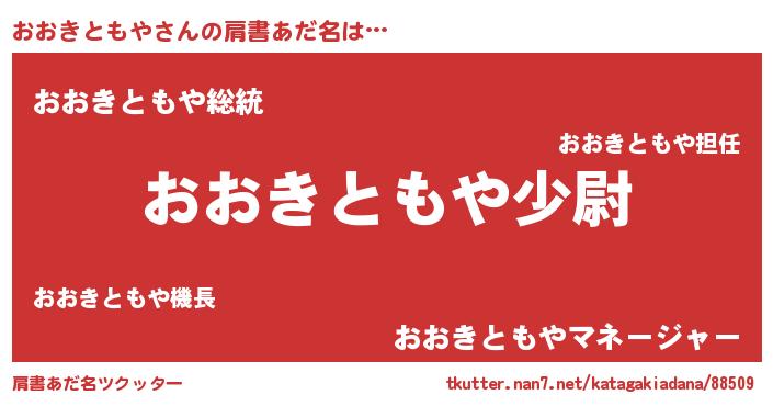 | 女子向けラノベタイトル風あだ名 | 『おおきともやの玉の輿計画!』 |