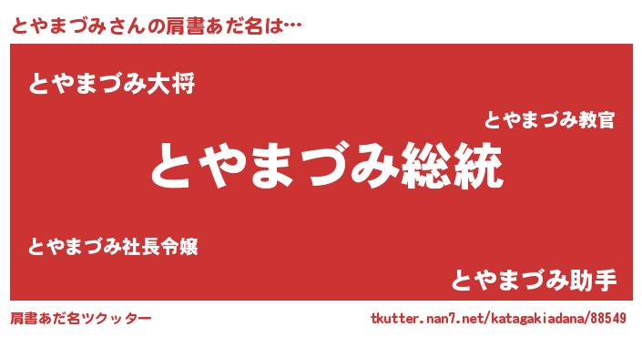 | ヘコむあだ名 | 『とやっふぃ~』『とやまづみ(震え声)』 |