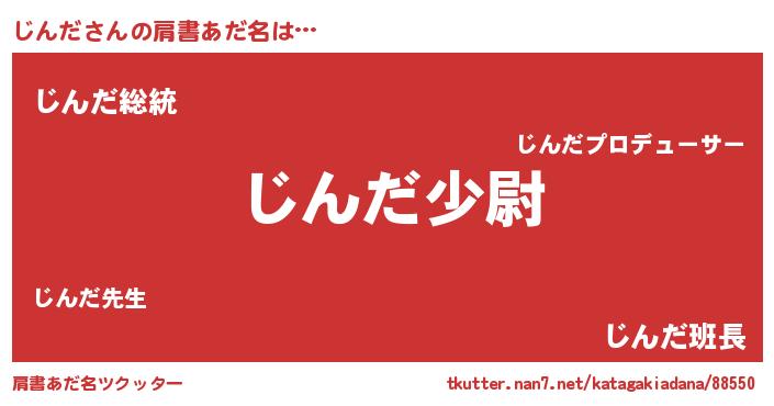 | 男性向けラノベタイトル風あだ名 | 『じんだ~年齢イコール彼女いない歴の魔法使い~』 |