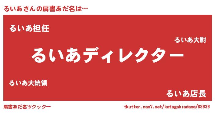 | 欧米人風あだ名 | 『アンジェラ・るいあ』『マイケルるいあ』 |