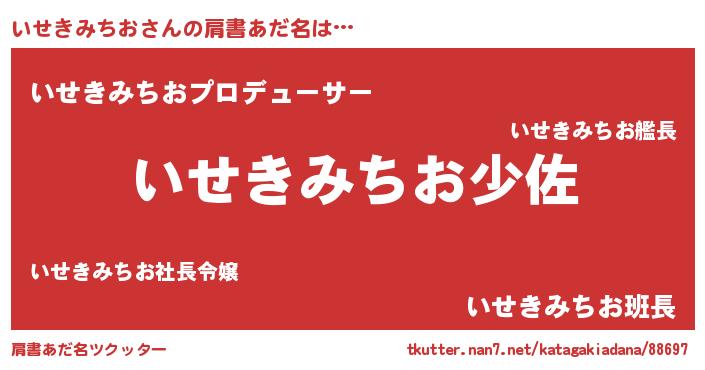 | 男性向けラノベタイトル風あだ名 | 『いせきみちお~年齢イコール彼女いない歴の魔法使い~』 |