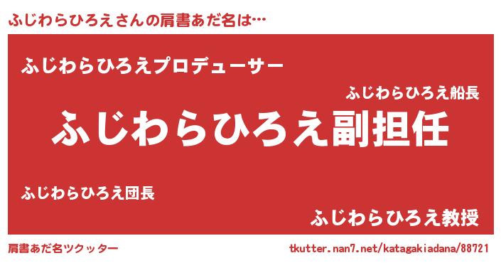 | ヘコむあだ名 | 『ふじわらひろえ(遠い目)』『ふじぷりん』 |