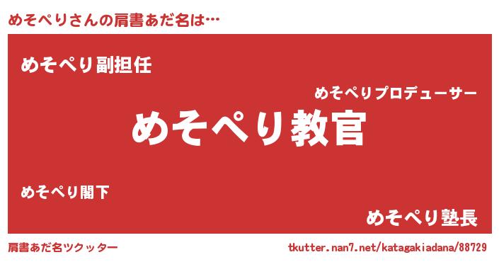 | ヒーロー風カッコイイあだ名 | 『仮面メソダー』『ネオメソペリ』 |