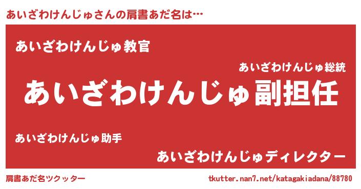 | 男性向けラノベタイトル風あだ名 | 『誰もが恐れるあのあいざわけんじゅが、ぼくの専属メイドになるようです。』 |
