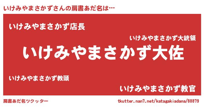 | 男性向けラノベタイトル風あだ名 | 『いけみやまさかず~年齢イコール彼女いない歴の魔法使い~』 |