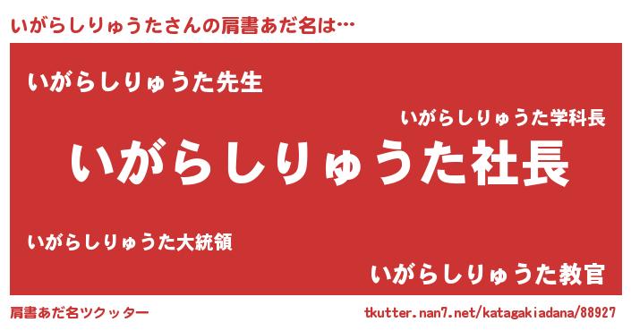 | 男性向けラノベタイトル風あだ名 | 『イガラシリュウタアートオンライン』 |