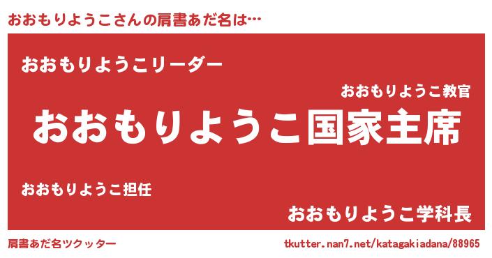| ポケモン風あだ名 | 『オオモダネ』『ヒオオモリヨウコ』 |