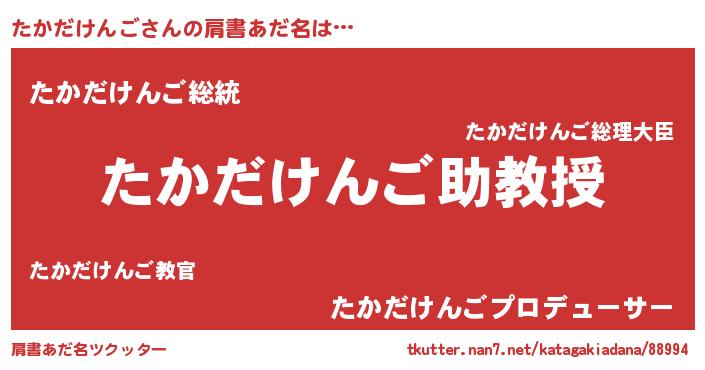 | ヒーロー風カッコイイあだ名 | 『慈愛の使者たかだけんご』 |