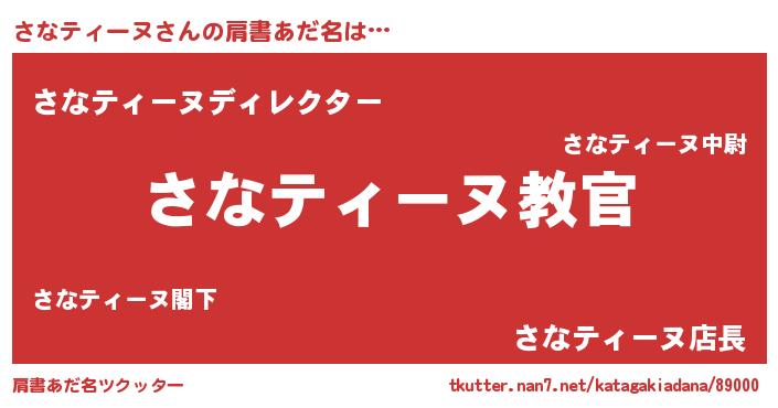 | 女子向けラノベタイトル風あだ名 | 『さなティーヌが死なない童話 林檎のさなティーヌの診療簿』 |