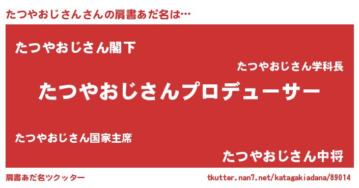 | 意味不明あだ名 | 『自称たつやおじさん』 |