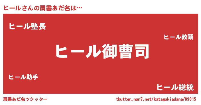 | 男性向けラノベタイトル風あだ名 | 『ヒールの憂鬱』『魔法科高校のヒール』 |