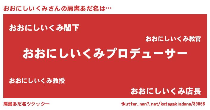 | 男性向けラノベタイトル風あだ名 | 『おおにしいくみに滅ぼされるだけの簡単なお仕事です』 |