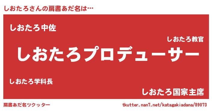 | 男性向けラノベタイトル風あだ名 | 『しおたろに滅ぼされるだけの簡単なお仕事です』 |
