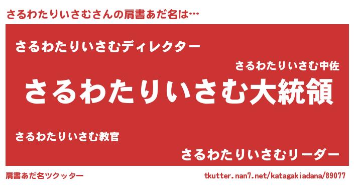 | 男性向けラノベタイトル風あだ名 | 『やはりさるわたりいさむの青春ラブコメはまちがっている 』 |
