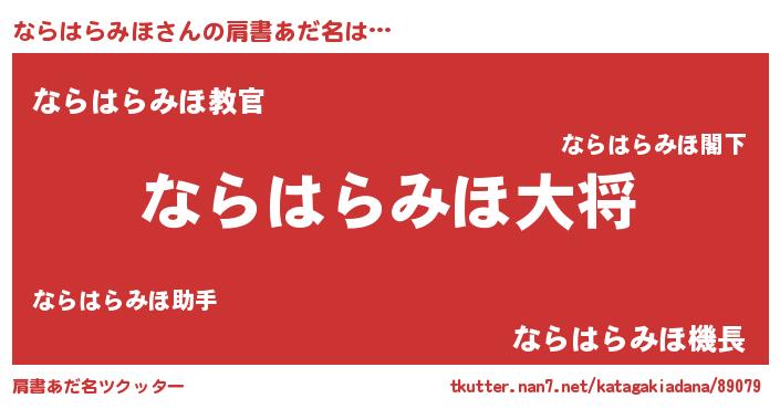 | ヘコむあだ名 | 『ならっふぃ~』『ならはらみほ(小並感)』 |