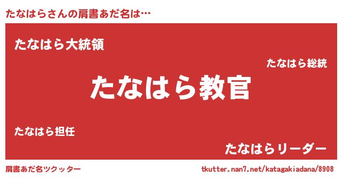 | 男性向けラノベタイトル風あだ名 | 『この素晴らしい世界にたなはらを!』 |
