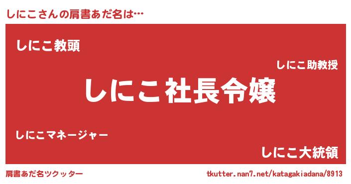 | ヘコむあだ名 | 『しにもー』『しにこ(笑)』『しにを』 |