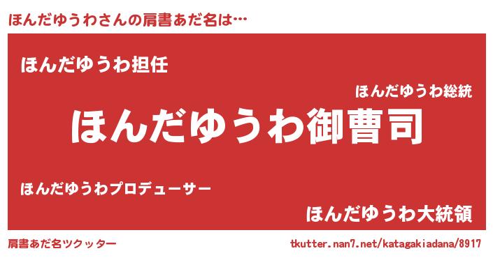 | 男性向けラノベタイトル風あだ名 | 『ホンダユウワアートオンライン』 |