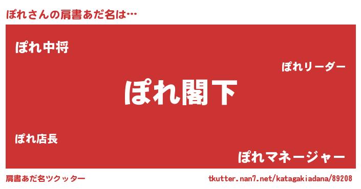| 男性向けラノベタイトル風あだ名 | 『Re:ぽれから始める異世界生活』 |