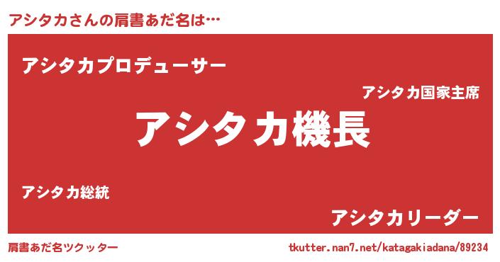 | ヒーロー風カッコイイあだ名 | 『幻影騎士アシ』『ウルトラアシタカマン』 |