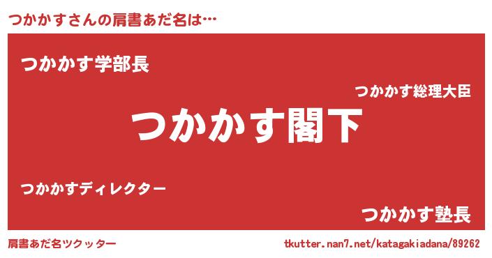 | 男性向けラノベタイトル風あだ名 | 『Re:つかかすから始める異世界生活』 |