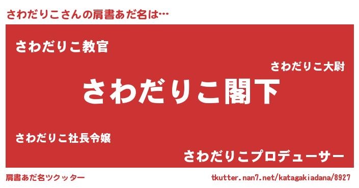 | 男性向けラノベタイトル風あだ名 | 『Re:さわだりこから始める異世界生活』 |