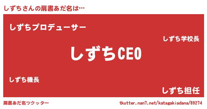 | ファンタジー風あだ名 | 『シズフェル』『シズディッシュ』 |