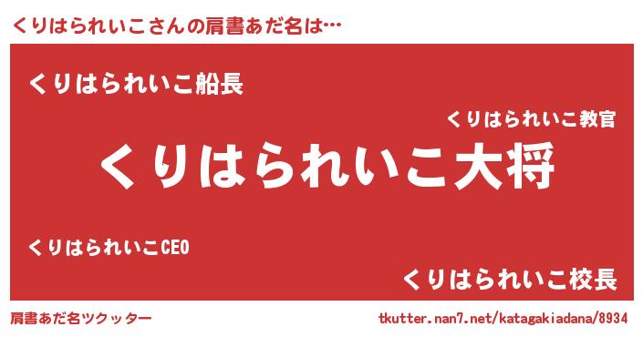| 男性向けラノベタイトル風あだ名 | 『くりはられいこ~年齢イコール彼女いない歴の魔法使い~』 |