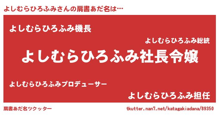 | ヘコむあだ名 | 『よしもー』『よしむらひろふみ(遠い目)』 |