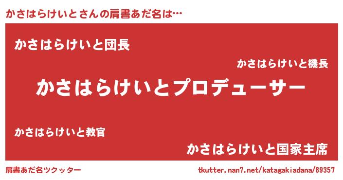 | 男性向けラノベタイトル風あだ名 | 『かさはらけいとに滅ぼされるだけの簡単なお仕事です』 |