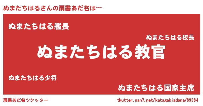 | 男性向けラノベタイトル風あだ名 | 『魔弾の王とぬまたちはる』 |