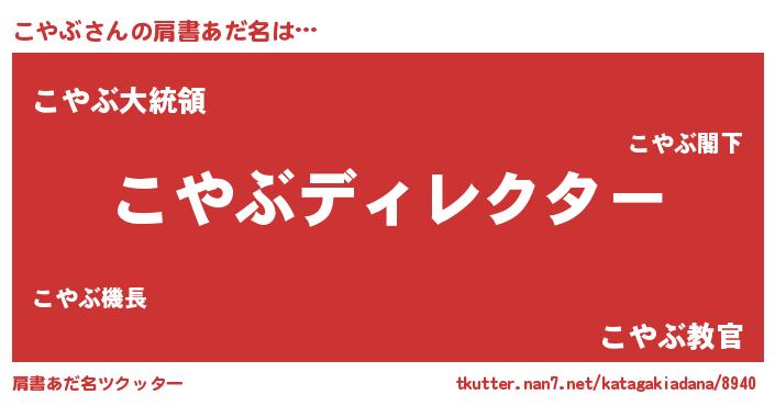 | 男性向けラノベタイトル風あだ名 | 『はたらくこやぶさま!』『緋弾のコヤブ』 |