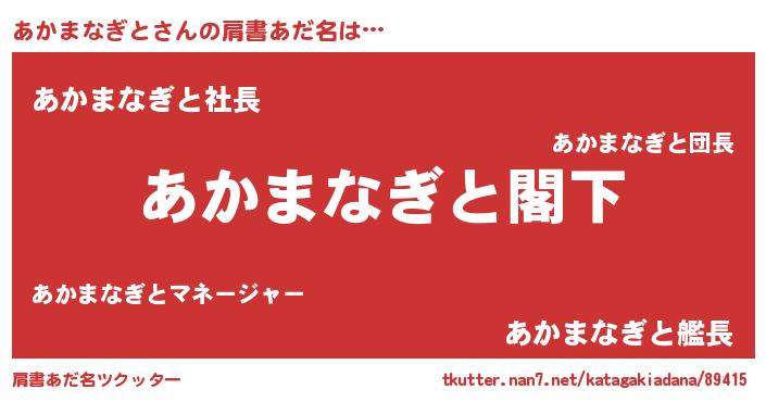 | 男性向けラノベタイトル風あだ名 | 『Re:あかまなぎとから始める異世界生活』 |