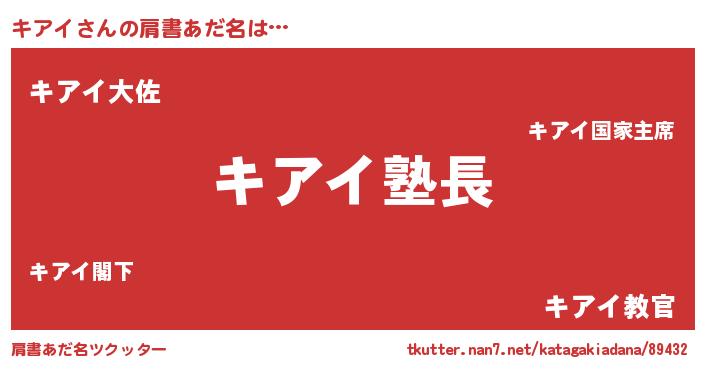 | 意味不明あだ名 | 『とにかく怪しいキアイ』『自称キアイ』 |