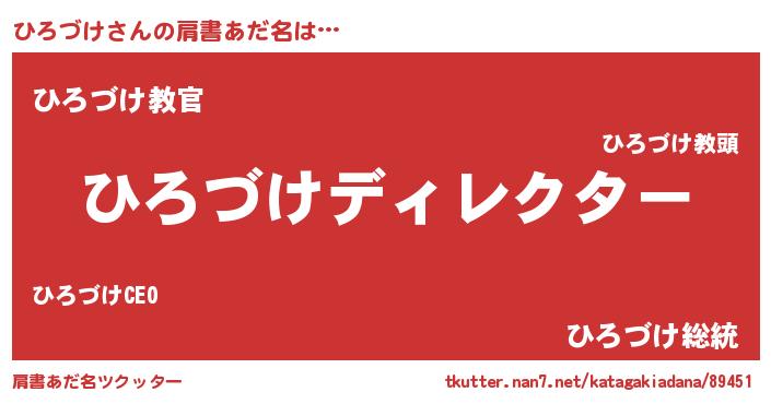 | ヒーロー風カッコイイあだ名 | 『仮面ヒロダー』『究極戦士ヒロヅケ』 |