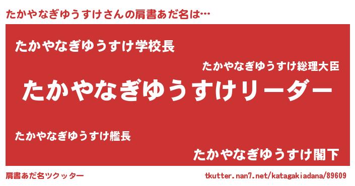 | 男性向けラノベタイトル風あだ名 | 『たかやなぎゆうすけの嫁は女の子じゃないと思った?』 |