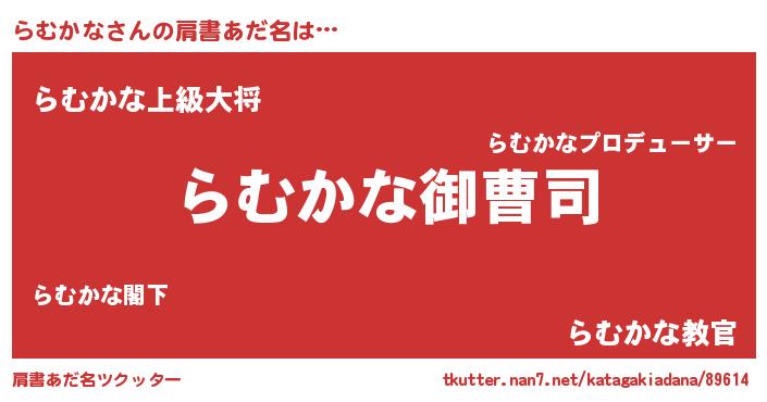 | 男性向けラノベタイトル風あだ名 | 『らむかなの憂鬱』『ラムカナスレイヤー』 |