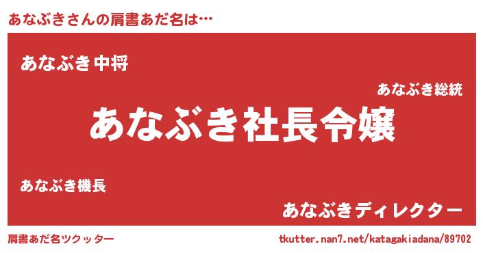 | 男性向けラノベタイトル風あだ名 | 『アナブキアートオンライン』 |