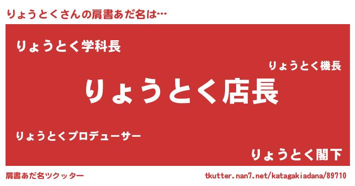 | 男性向けラノベタイトル風あだ名 | 『りょうとくの憂鬱』 |
