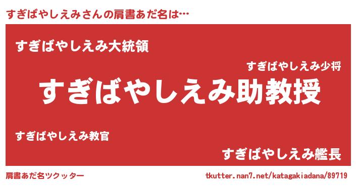 | 男性向けラノベタイトル風あだ名 | 『おまえをオタクにしてやるから、俺をすぎばやしえみにしてくれ! 』 |