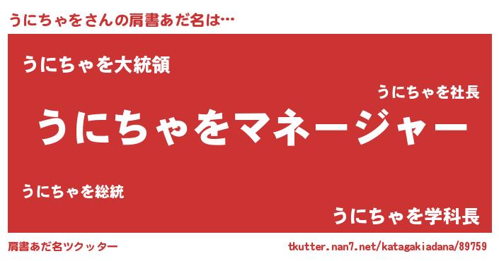 | 男性向けラノベタイトル風あだ名 | 『はたらくうにちゃをさま!』 |
