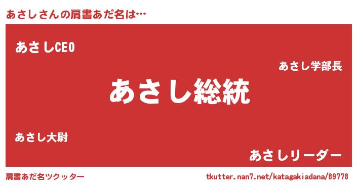 | ポケモン風あだ名 | 『アサセウス』『アサチュウ』 |