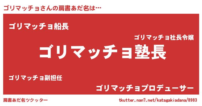 | ピコ太郎風あだ名 | 『ゴリ五郎』『ゴコ次郎』『ピコゴ郎』 |